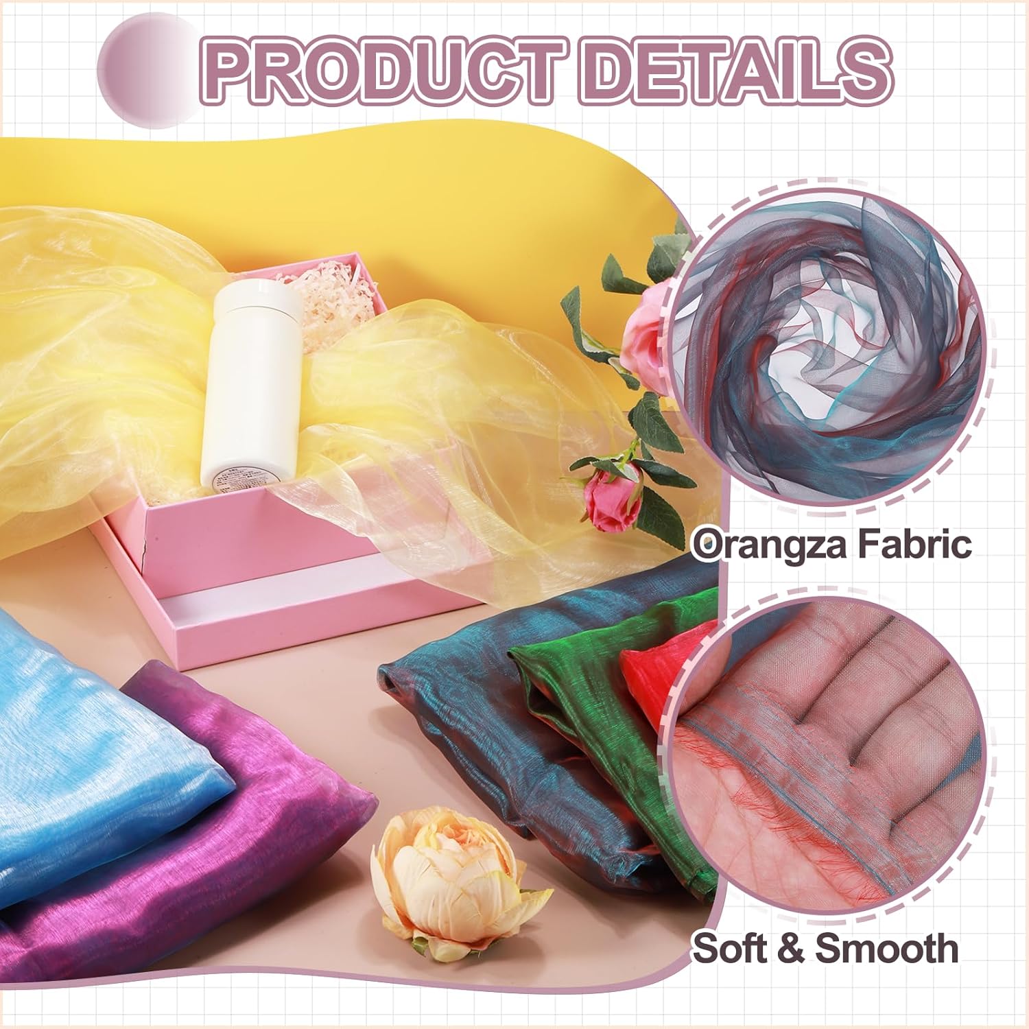 - Elevate your creative vision with this iridescent organza fabric, blending functionality and elegant beauty. Perfect for bridal wear, home decoration, curtains, table runners, event backdrops, floral arrangements, and DIY crafts.