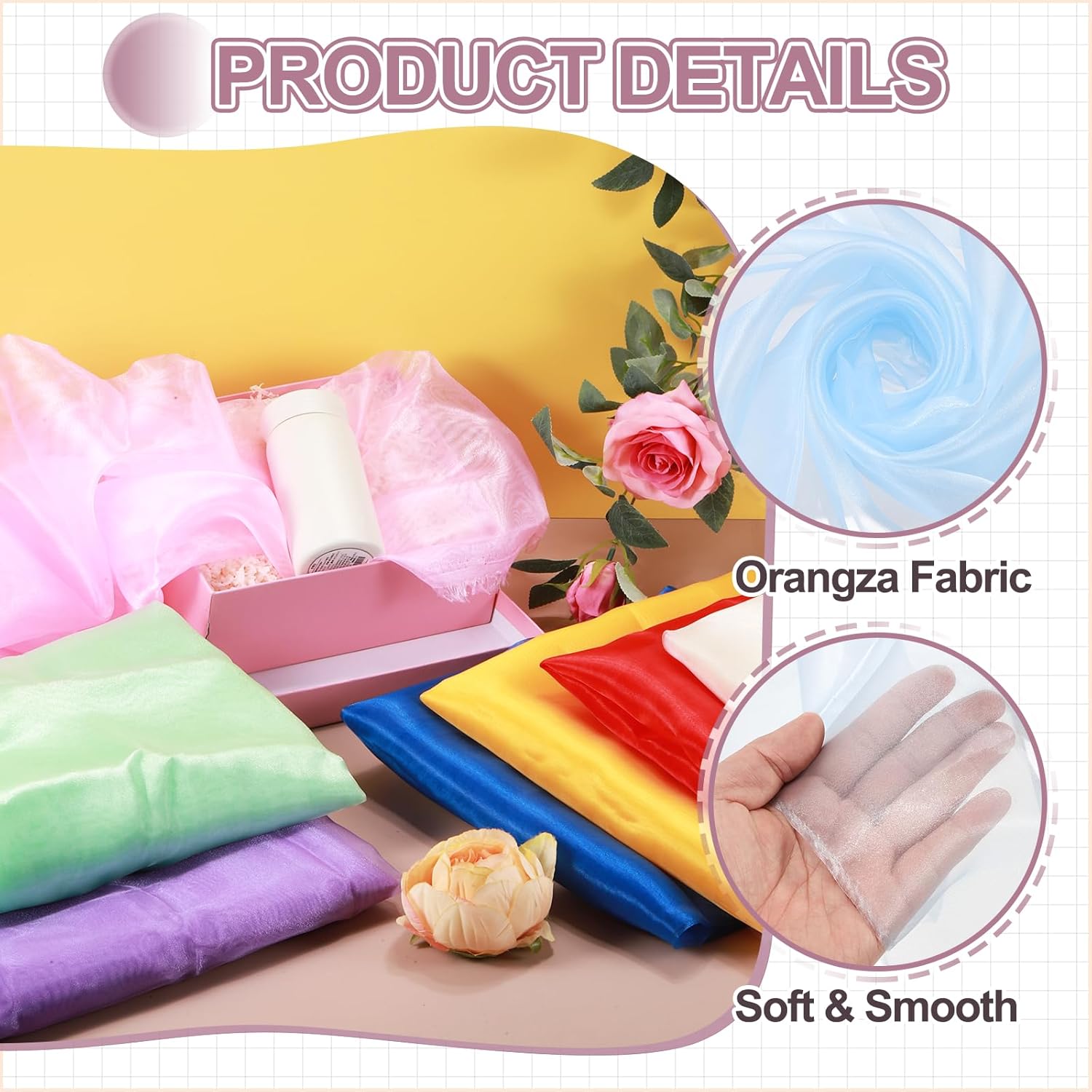 - The organza fabric is in the size of 10 yards x 59 inches/ 9.1m x 150cm (LxW), providing ample fabric for large-scale designs, making it good for wedding dresses, curtains, or event installations.