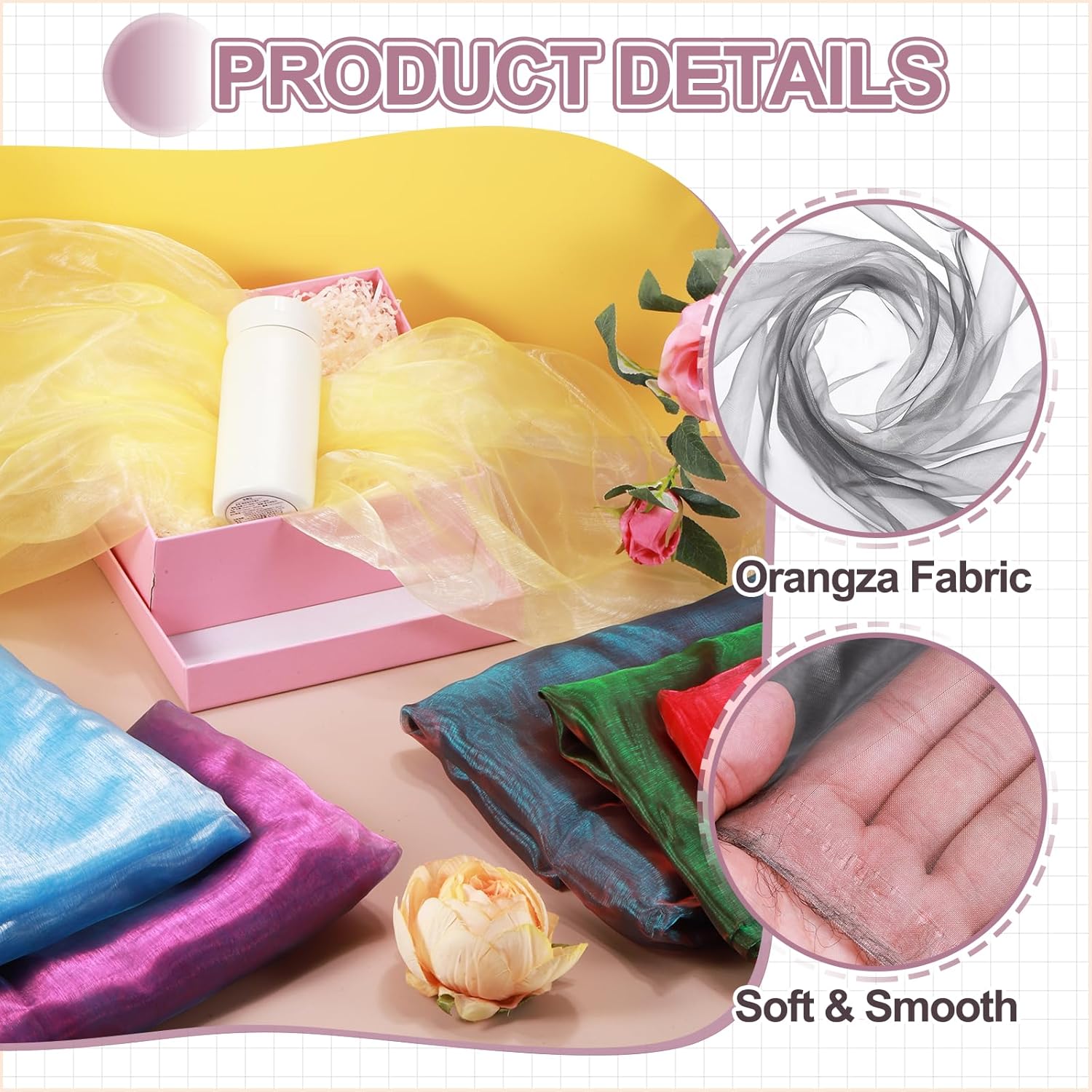 - Elevate your creative vision with this iridescent organza fabric, blending functionality and elegant beauty. Perfect for bridal wear, home decoration, curtains, table runners, event backdrops, floral arrangements, and DIY crafts.