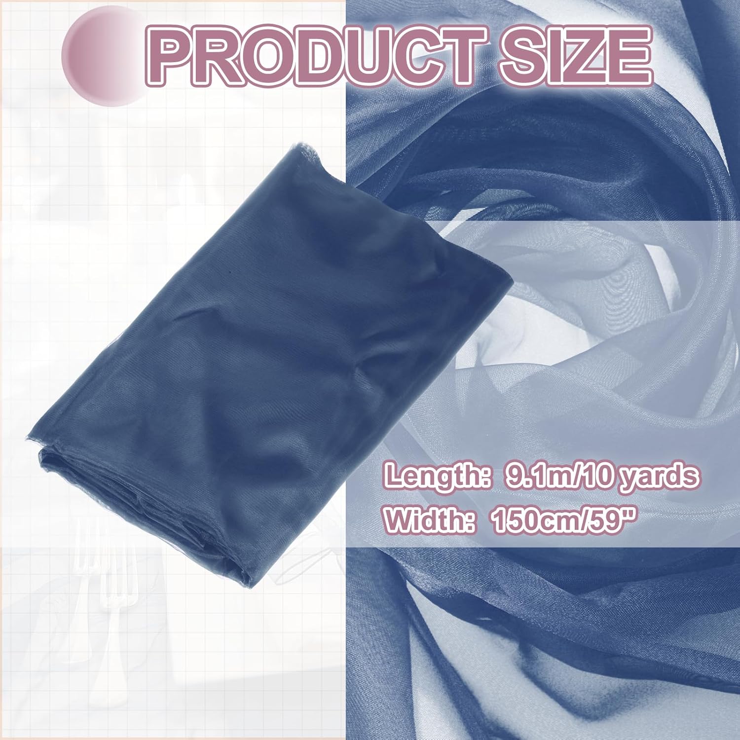 - The organza fabric is in the size of 10 yards x 59 inches/ 9.1m x 150cm (LxW), providing ample fabric for large-scale designs, making it good for wedding dresses, curtains, or event installations.