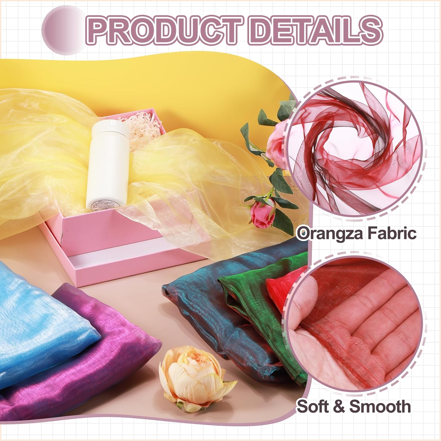 - Elevate your creative vision with this iridescent organza fabric, blending functionality and elegant beauty. Perfect for bridal wear, home decoration, curtains, table runners, event backdrops, floral arrangements, and DIY crafts.
