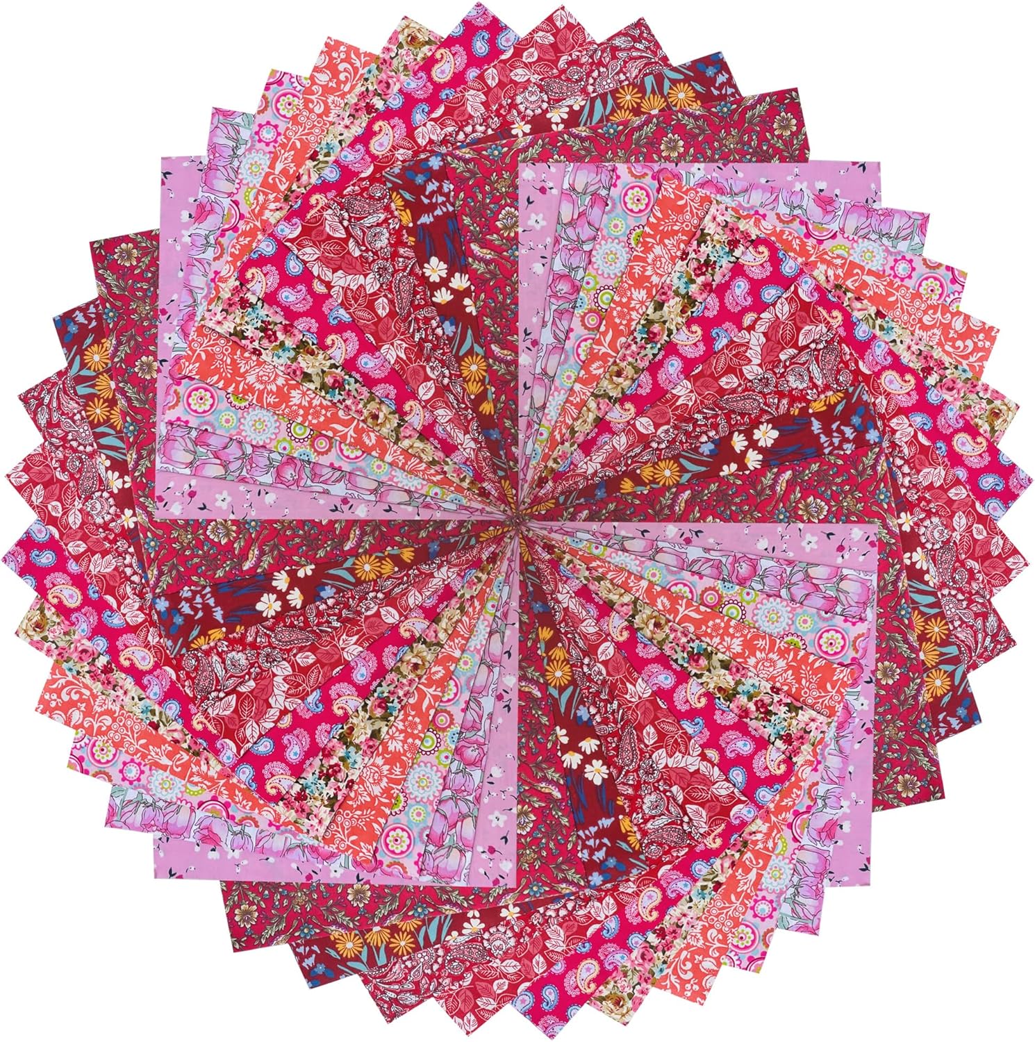 - Material and Size: These quilting fabric are made of 100% high-quality cotton, featuring soft and strong fabric bundles. Each sheet measures 10 x 10 inches. This set includes 50 pieces of 5 kinds of red printed fabric squares, providing a variety of colors to satisfy your multiple craft sewing needs.
