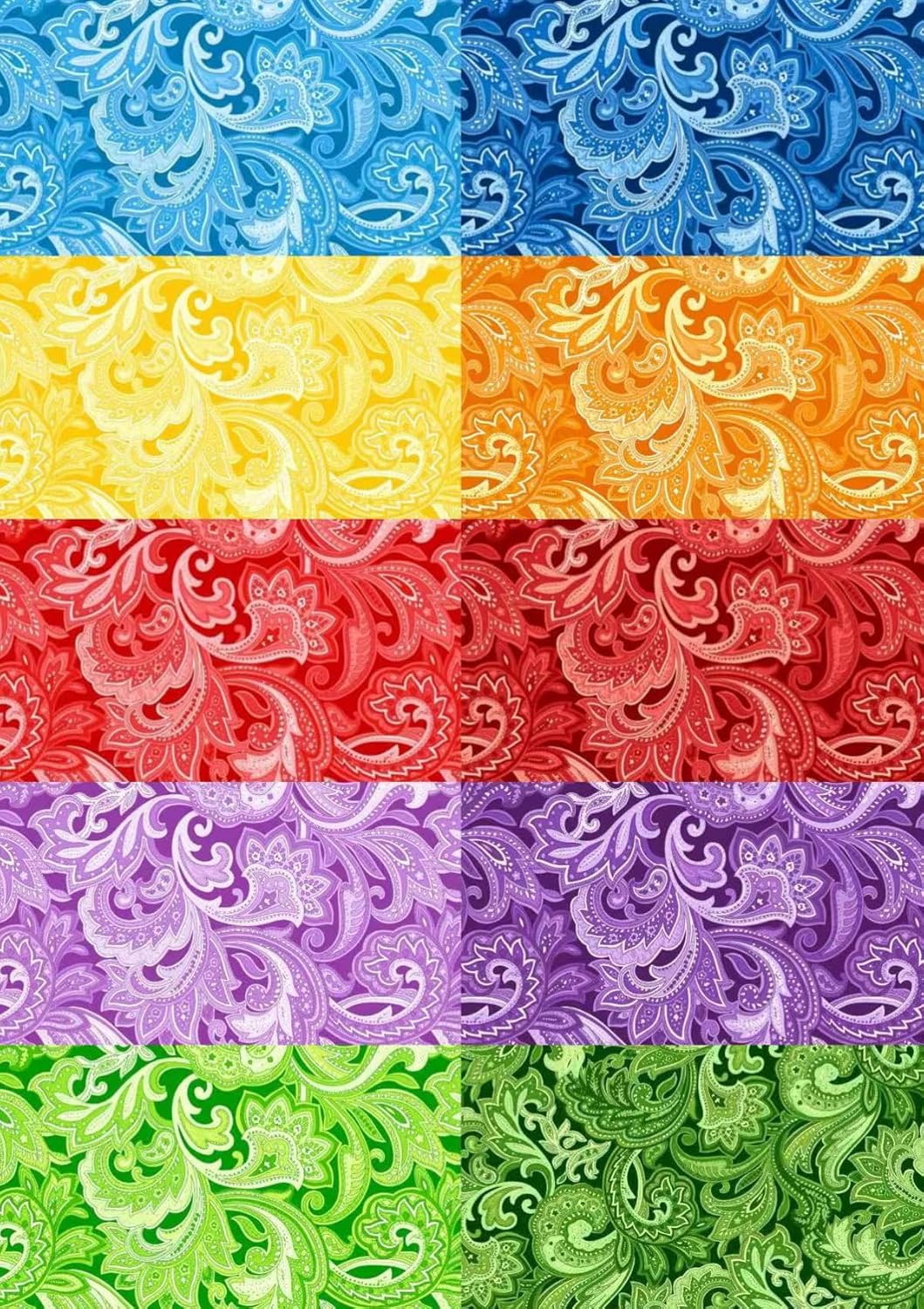 - Material and Size: These quilting fabric are made of 100% high-quality cotton, featuring soft and strong fabric bundles. Each sheet measures 12 x 12 inches. This set includes 50 pieces of 5 kinds of paisley printed fabric squares, providing a variety of colors to satisfy your multiple craft sewing needs.