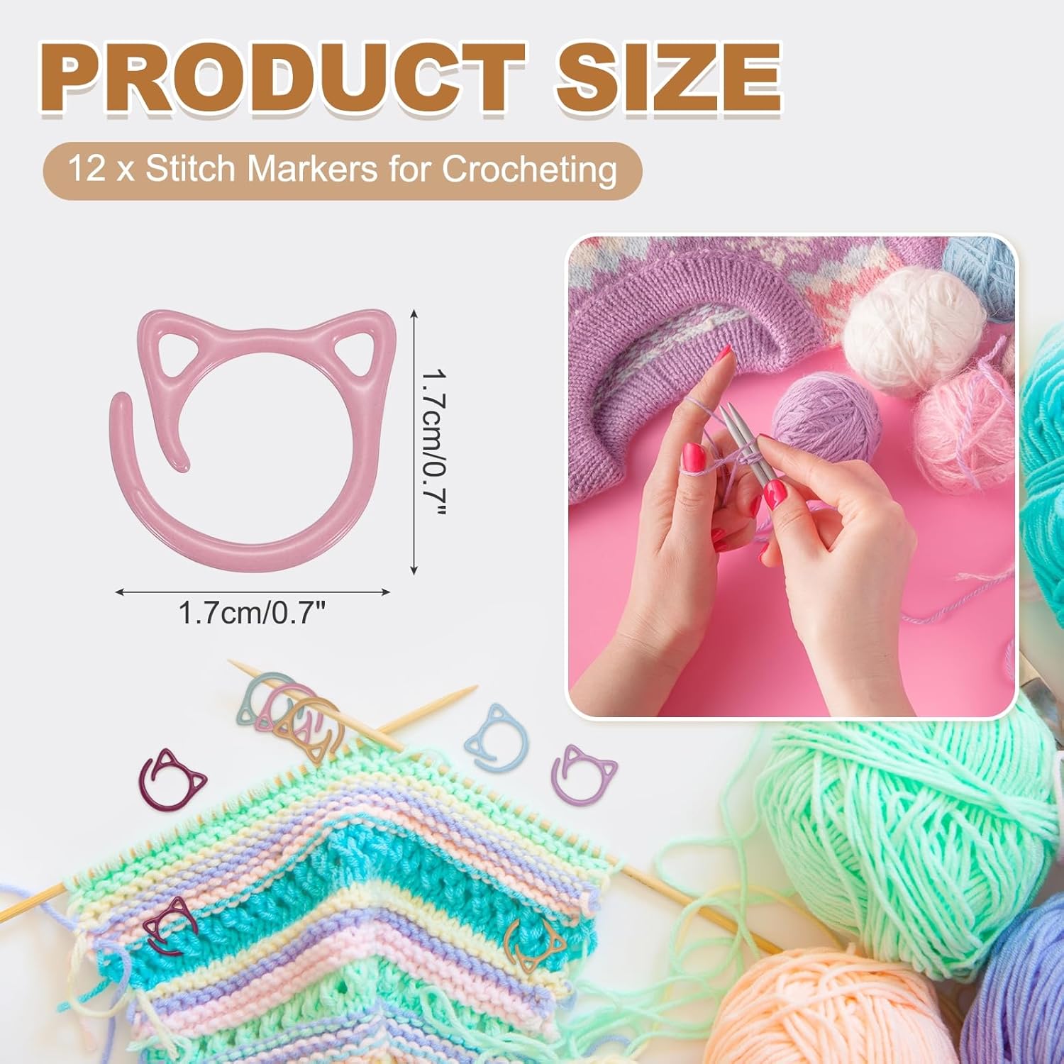 - Color:Dusty Pink; Material:Metal; Size:1.7x1.7x1 cm / 0.7x0.7x0.4 inches (L*W*H); Packing List:12 x Stitch Markers for Crocheting