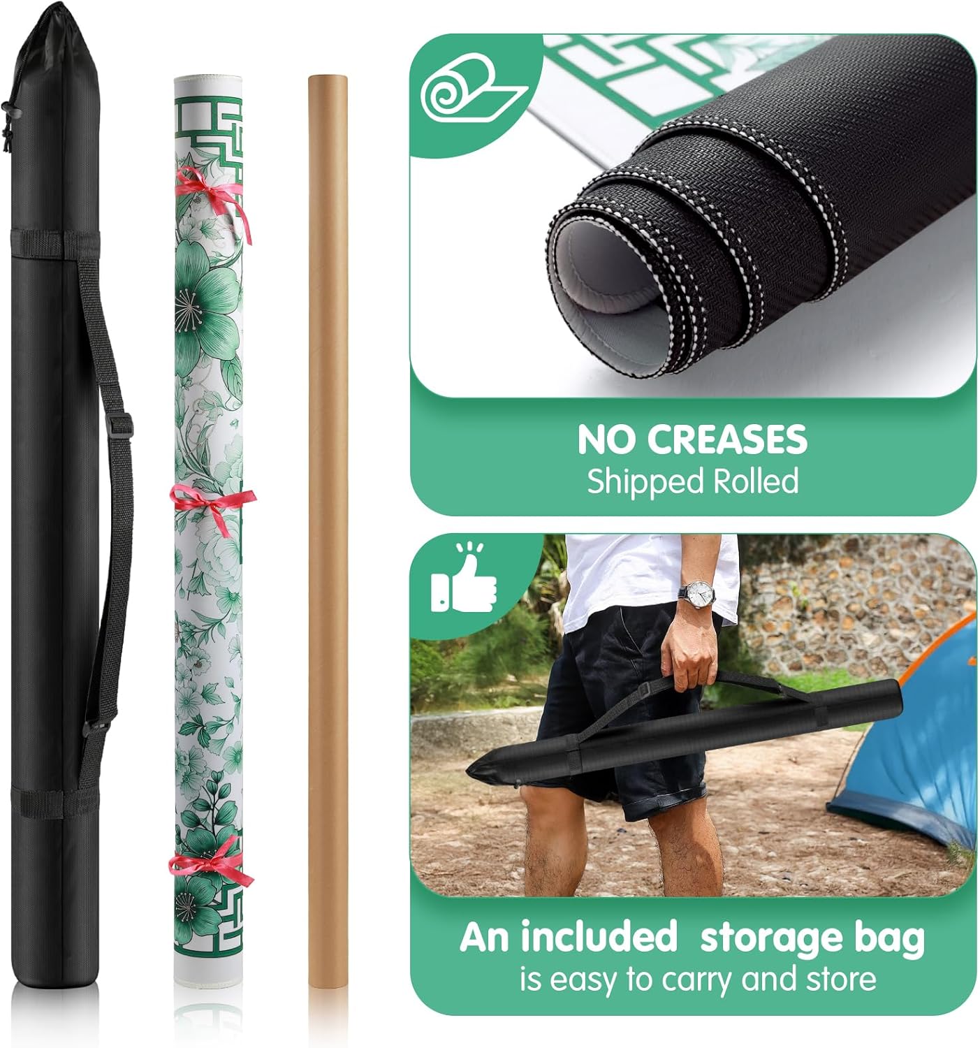 Mahjong Mat for Table 33x33 Inch, No-Crease,Anti-Slip,Noise-Reducing American Mahjong Mat, Mahjong Table Mat with Carry Bag, Neoprene Mahjong Mat for Poker, Card, Board (Green)