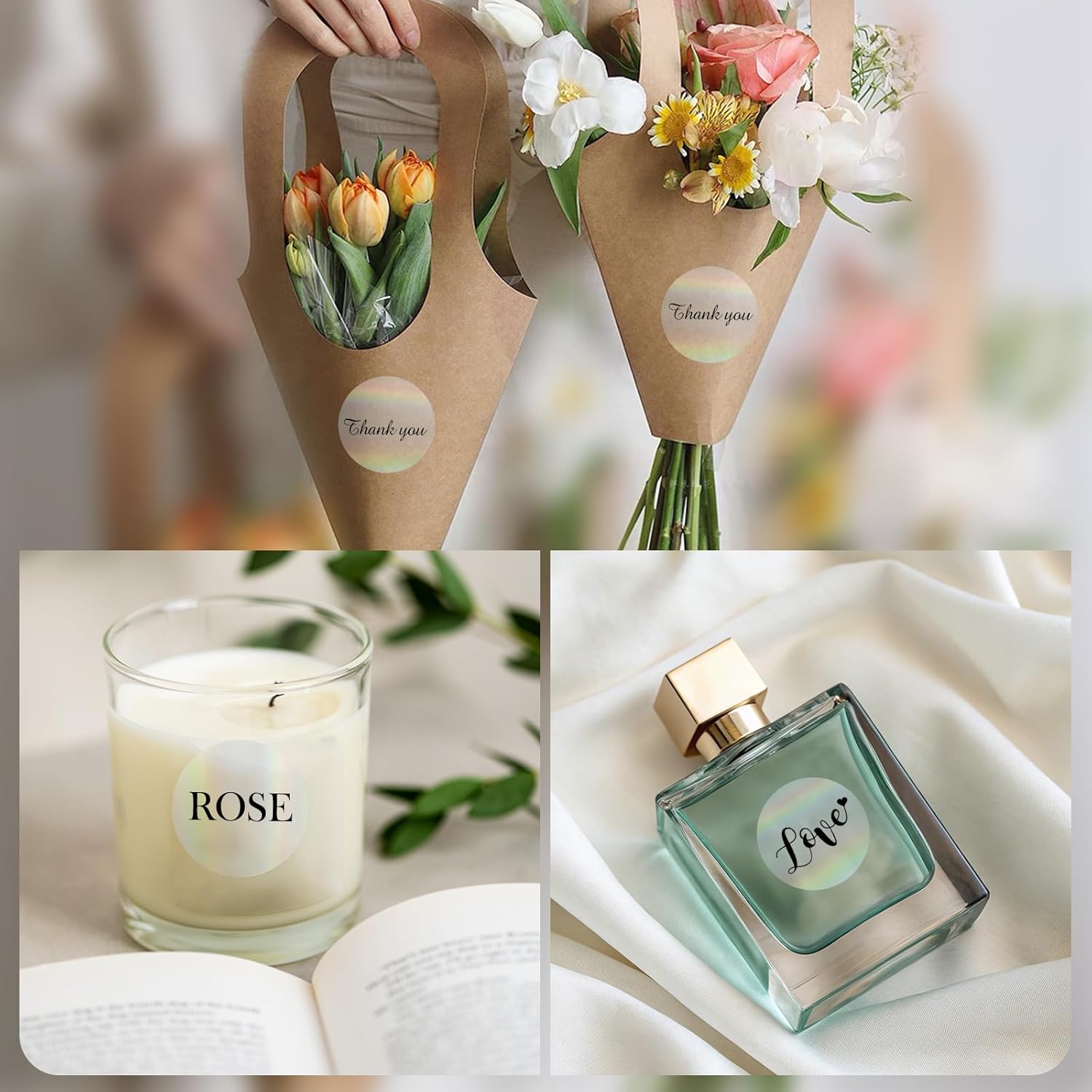 - Transparent Holographic Thermal Label, The color of the surface of the sticker can be changed under the light with the move, which is beautiful and charming